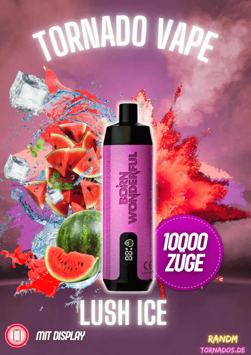 Bei der RandM Tornado 10000 Lush Ice trifft erfrischende Wassermelone eisige K??hle.