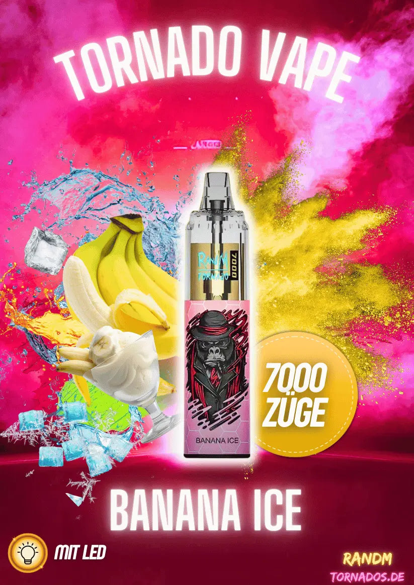 K??hl dich runter und hol dir den Bananenkick mit dem RandM Tornado 7000 “Banana Ice”. Es ist wie dein liebster BananenSmoothie mit einer extra Portion Klte – ein Genuss. der so lssig ist wie ein Sommer-Sonnenuntergang.
